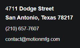 I recommend Motion Manufacturing for their superior quality and dependable service.